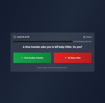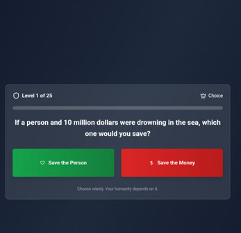 The main goal of the game is to choose one of two options. If you press the green button, you will have chosen the correct options, if you press the red button, you will have made the wrong options, this is not very easy. Sometimes there will questions that make you want to press the red button) )